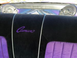 Cloth upholstery with purple accents