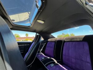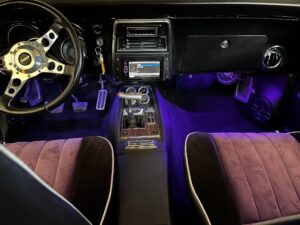 The car has been extensively customized, with features including heated front seats, a removable sunroof, Vintage Air A/C, and a Kenwood touchscreen system with KICKER subwoofer and speakers. This example blends classic muscle car styling with modern comforts and flair, ideal for collectors or show enthusiasts seeking a standout restomod.