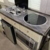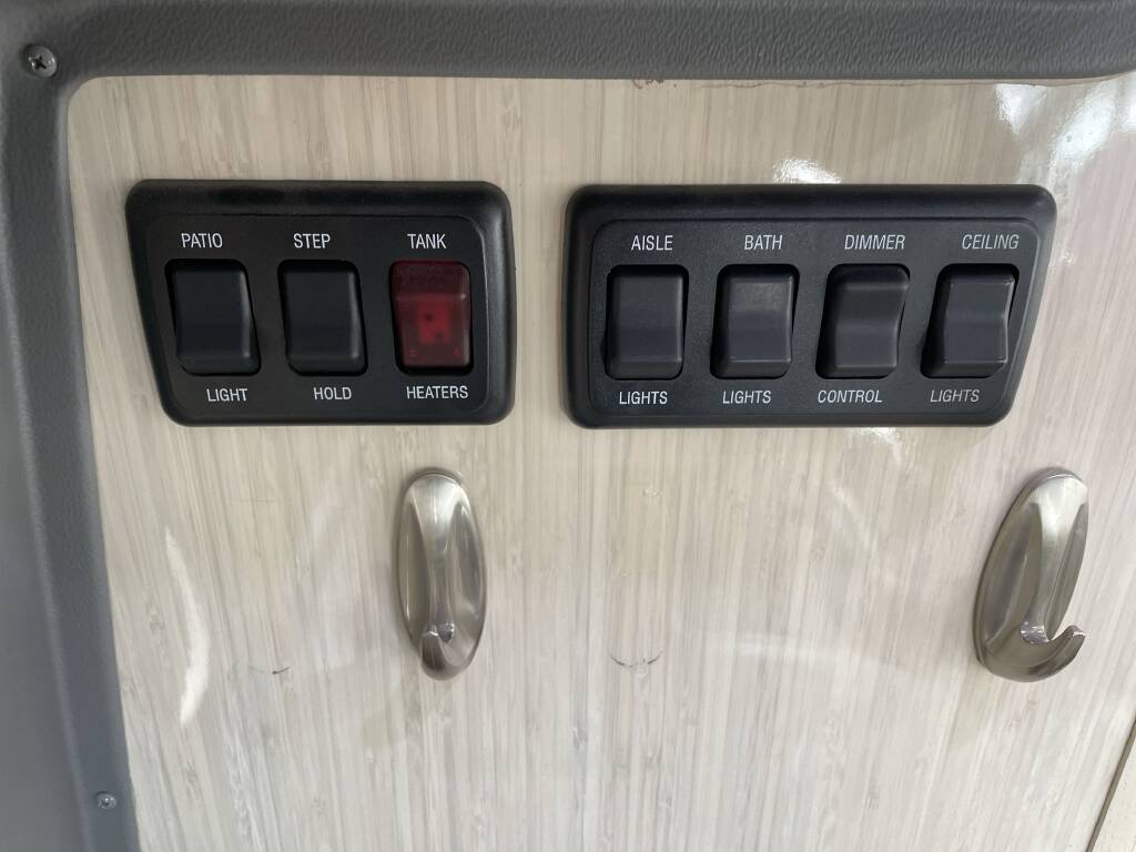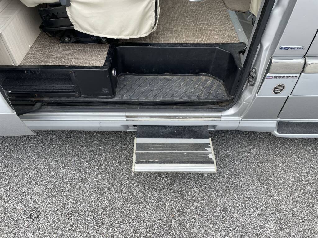 The exterior paint and graphics show minimal wear, the interior is clean and well-preserved, and all systems (A/C, electrical, water, appliances) are fully operational.
