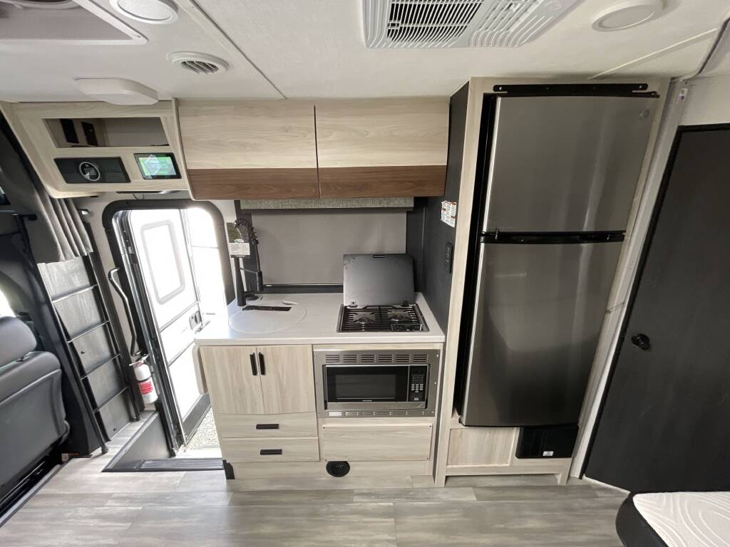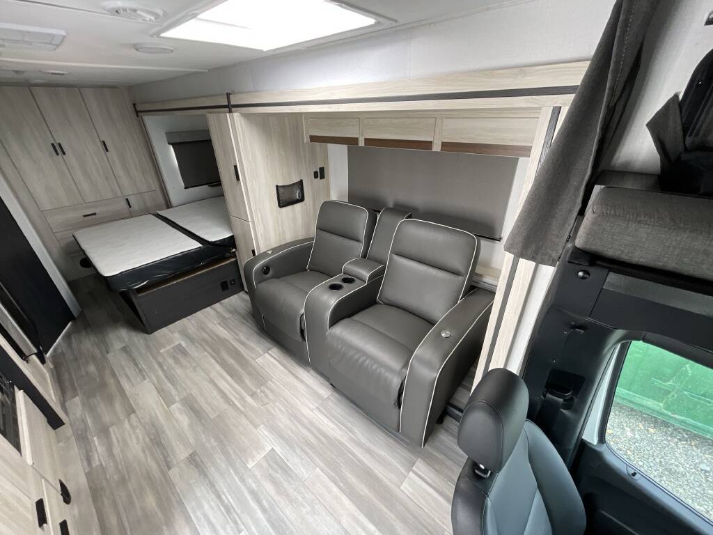 Built on the Mercedes Sprinter chassis and powered by a 3.0L V6 turbo diesel, this 25-foot Class C motorhome offers smooth highway handling, exceptional fuel economy, and high-end features ideal for both short getaways and long-term touring.