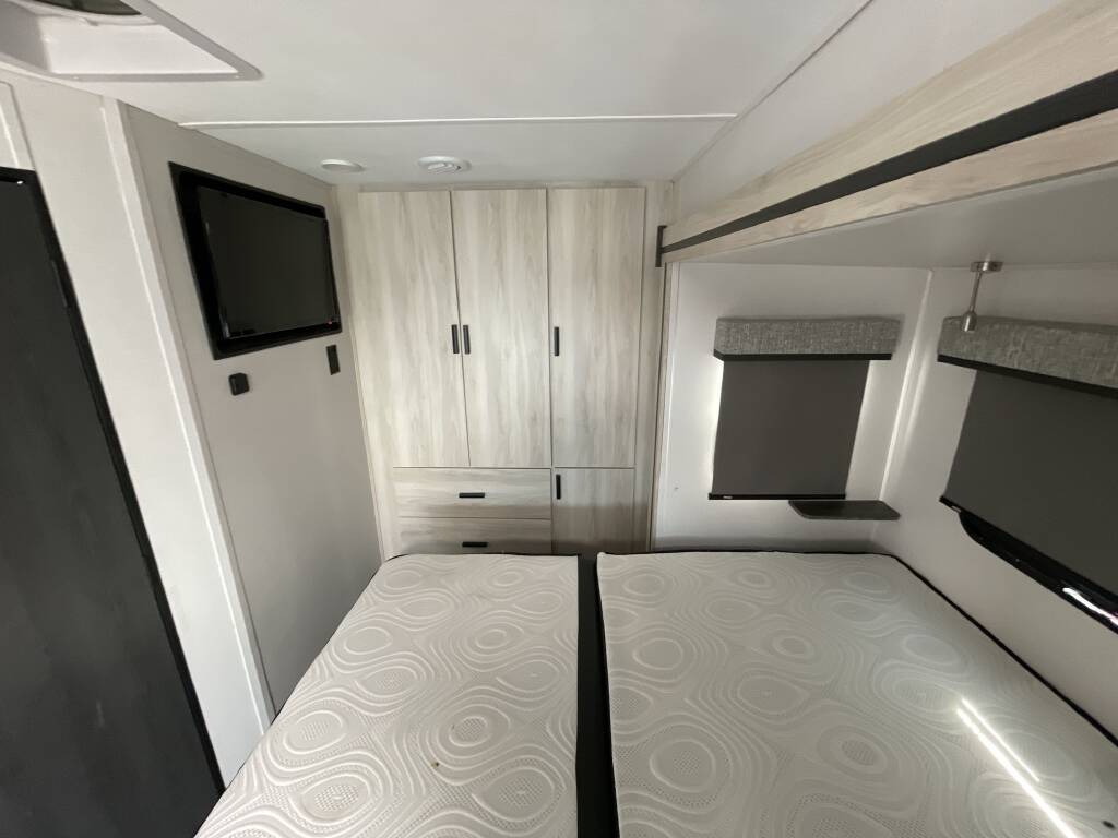 The smart floorplan maximizes interior comfort, offering a private rear bedroom, a full rear bathroom, and an open central living area with a large slide-out. With sleeping space for up to six, a fully equipped kitchen, and off-grid readiness thanks to its onboard generator, the Forester MBS 2401B is designed for freedom, flexibility, and everyday livability.