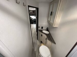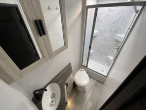 Full Rear Bathroom with Enclosed Shower, Toilet, and Vanity